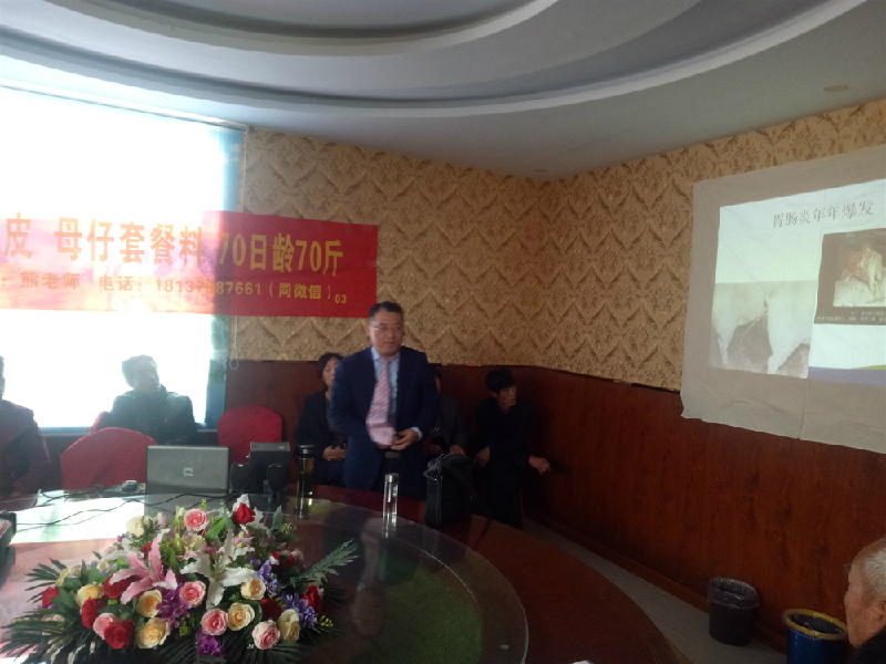 會(huì)議開(kāi)始后,大陸農(nóng)牧的熊程輝老師對(duì)到會(huì)的養(yǎng)豬戶做了養(yǎng)豬行情分析,會(huì)議內(nèi)容主要以養(yǎng)豬虧損期如何抓好母豬效益為主導(dǎo)思路,對(duì)如何排出母豬體內(nèi)毒素、如何提高母豬的生產(chǎn)效益、如何提高母豬的使用年限、如何提高仔豬的斷奶窩重,針對(duì)在母豬飼養(yǎng)過(guò)程中出現(xiàn)的一系列問(wèn)題,對(duì)養(yǎng)豬戶進(jìn)行了深入淺出、通俗易懂的激情講解。同時(shí)對(duì)大陸農(nóng)牧大母豬繁殖營(yíng)養(yǎng)體系中40母豬料的使用方法和使用模式進(jìn)行了認(rèn)真的講解,詳細(xì)的告訴養(yǎng)豬戶大陸農(nóng)牧的母仔套餐是母豬多產(chǎn)仔、小豬活力強(qiáng)的有效保證,是仔豬70天達(dá)到70斤的有效保證。熊老師在會(huì)議最后明確強(qiáng)調(diào):對(duì)于規(guī)模在300頭母豬以下的養(yǎng)豬戶,豬價(jià)4.8的保本生產(chǎn)成績(jī)做法是------26頭,大陸農(nóng)牧的大母豬40母豬料系列產(chǎn)品是提升PSY的有效保證,可以幫助不達(dá)標(biāo)的豬場(chǎng)盡快先達(dá)到PSY26頭。來(lái)自全國(guó)各地大量的實(shí)證數(shù)據(jù)驗(yàn)證了大陸農(nóng)牧的母豬料效果,其中大陸農(nóng)牧無(wú)麩皮哺乳母豬料—乳寶40的使用效果
