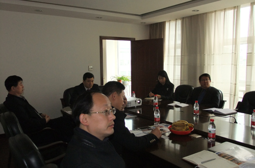 張國斌一行三人在認真聆聽董事長任勇的詳細介紹